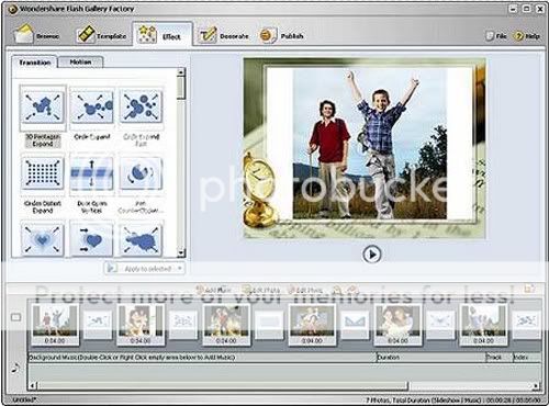 Wondershare Flash Gallery Factory Standard is a simple yet powerful flash slideshow maker to create flash photo slideshow with SWF or HTML as output format for sharing on MySpace, Blogger and websites. Flash Gallery Factory Deluxe includes all the power of Standard Version, plus more features.It provides a wide range of free flash slideshow templates, which can be used to make thumbnail image slideshow, flash photo slideshow, flash banner, digital photo album, etc.